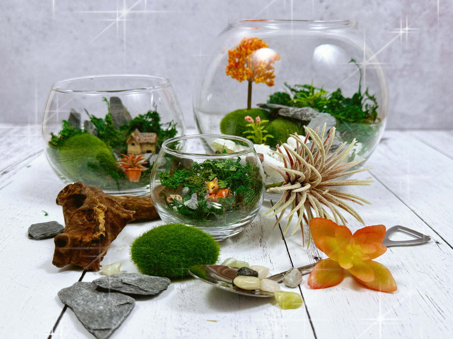 ✨ The Experience Participants will build a decorative terrarium inside a glass pod using preserved moss, sand and pebbles, faux succulents, and optional tiny woodland accents. Gentle guidance is provided throughout, with an emphasis on presence, curiosity, and enjoying the act of making. This experience unfolds at an unhurried pace, allowing time to settle in, follow intuition, and engage fully with the materials.