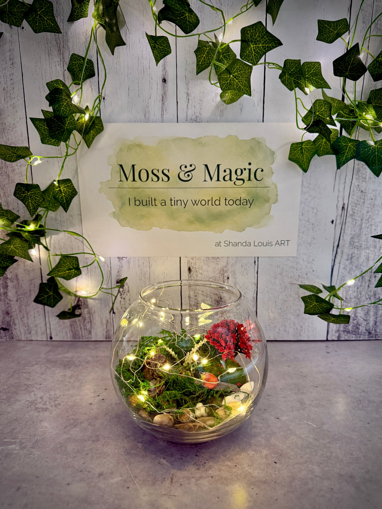 Moss & Magic is a slow, hands-on terrarium experience created for beginners and curious makers alike. This small-group offering invites you to step out of daily noise and into a more intentional, tactile rhythm.
